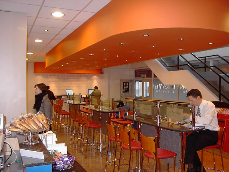 The continental style coffee bar design provides a contemporary space for students and staff to meet and socialise or catch up on work. We incorporated computers into the design for extra functionality.